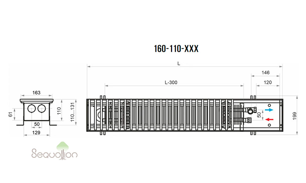 Внутрипольный конвектор HTS с естественной конвекцией (без вентилятора):