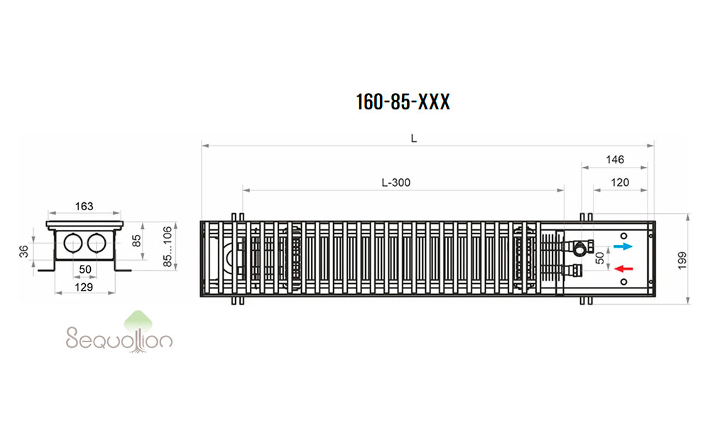Внутрипольный конвектор HTS с естественной конвекцией (без вентилятора):
