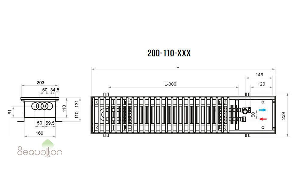 Внутрипольный конвектор HTS с естественной конвекцией (без вентилятора):