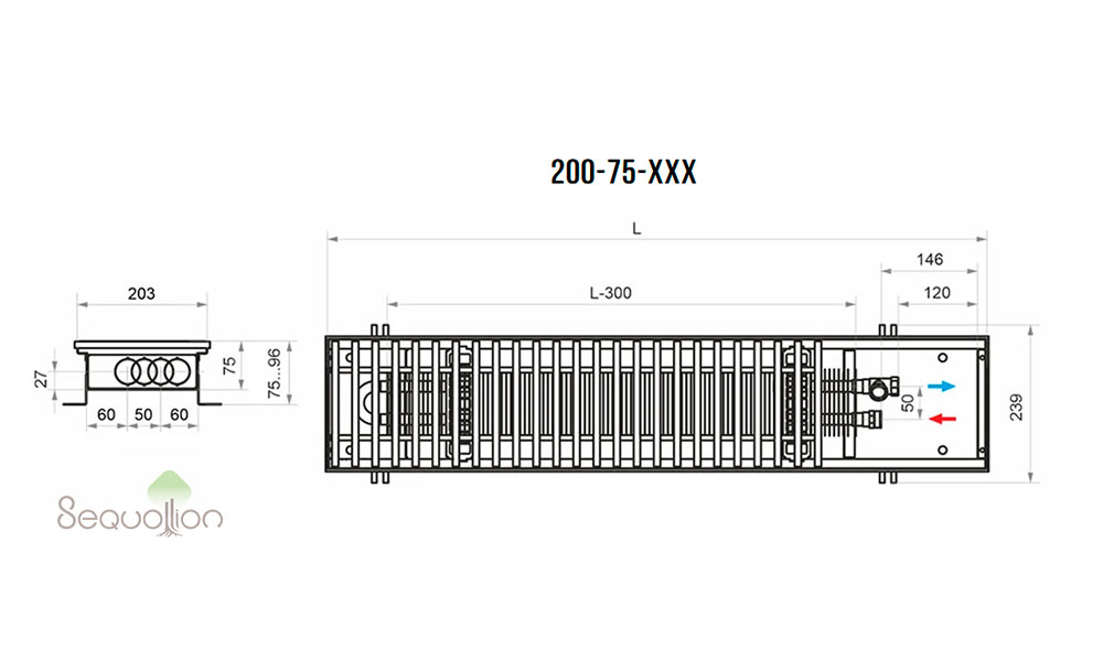 Внутрипольный конвектор HTS с естественной конвекцией (без вентилятора):
