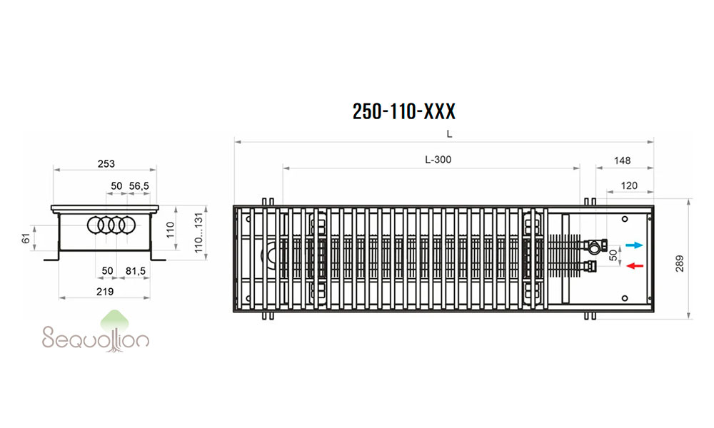 Внутрипольный конвектор HTS с естественной конвекцией (без вентилятора):