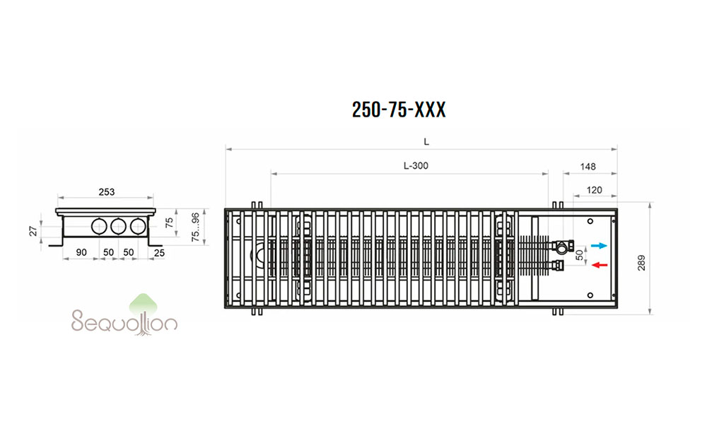 Внутрипольный конвектор HTS с естественной конвекцией (без вентилятора):