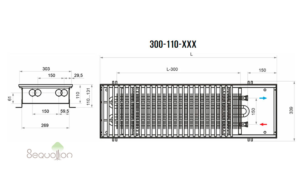 Внутрипольный конвектор HTS с естественной конвекцией (без вентилятора):