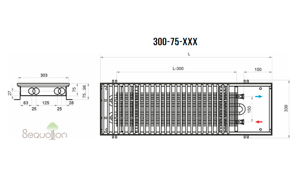 Внутрипольный конвектор HTS с естественной конвекцией (без вентилятора):