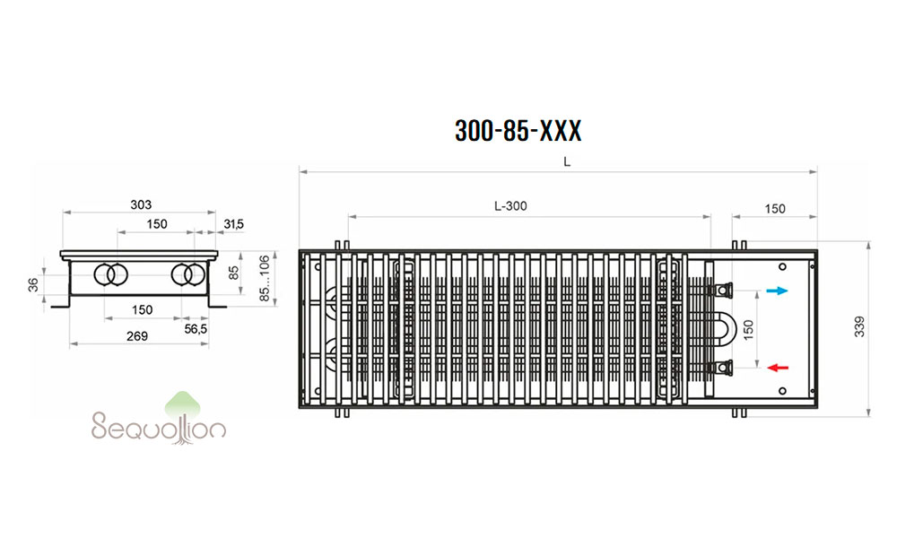 Внутрипольный конвектор HTS с естественной конвекцией (без вентилятора):