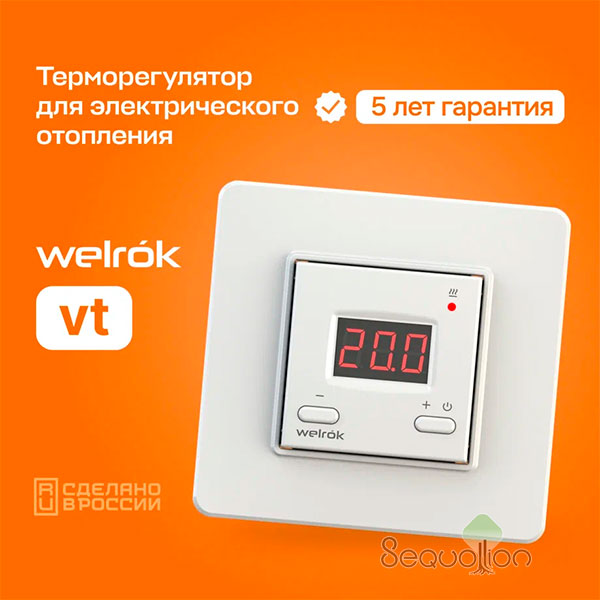 Welrok VT – цифровой терморегулятор с непревзойденной простотой использования. Он регулирует температуру в диапазоне от 5 до 35 °С, базируясь на данных от выносного датчика и на требования пользователя.