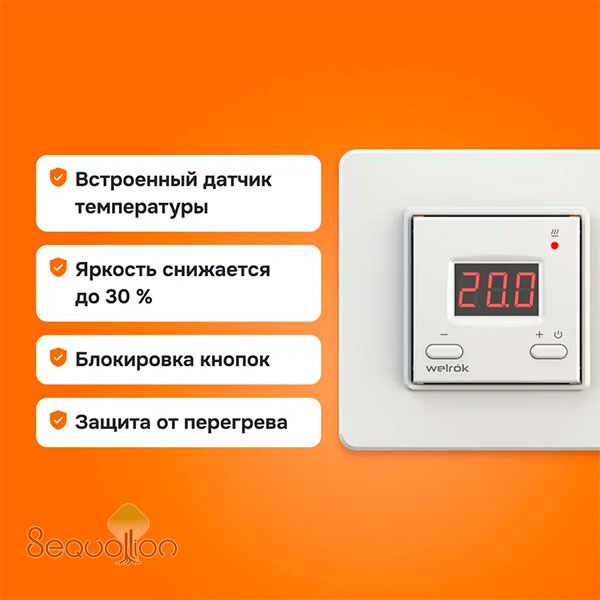 Welrok vt – цифровой терморегулятор для систем электрического отопления, таких как инфракрасные панельные обогреватели и конвекторы до 2 кВт. Термостат Welrok vt имеет встроенный термодатчик.